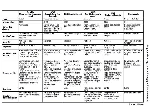 Au niveau international, ce tableau issu de ce guide pratique de Nature & Progrès (citant une étude de l’organisme international de référence sur la question, l’IFOAM) montre une série d’initiatives proches au Brésil, en Nouvelle-Zélande, en Inde, aux USA ou en Nouvelle-Calédonie.